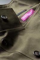 長いデザイン、大きなポケットが特徴のラボコート